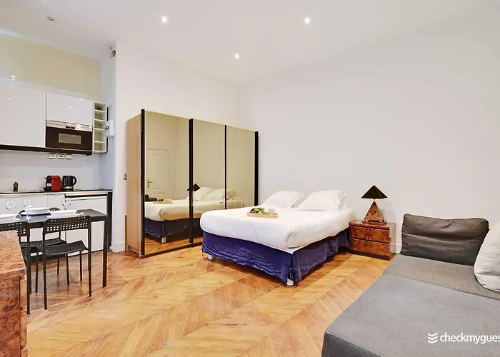 Peaceful Studio - 3P - Le Marais разместилась менее чем в 1 км от Национального архива и в радиусе 2 км от Сада Тюильри. Апартаменты находятся напротив Пассажа Брэди. В распоряжении гостей стиральная машина.